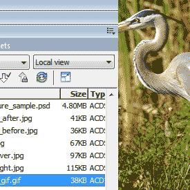 If you look at the bird (heron) at the top, you'll see that it looks good in the Jpg, but a little grainy in the Gif. That's because I saved it as a Gif with 32 colors out of a maximum of 256 for this example. Yes, you can only show 256 colors in a gif and that is it's major limitation. You'll also notice that the gif did a great job on displaying the text in the bottom images, while the jpg is not nearly as crisp. Almost all of the screenshots on this site are gifs, while the photos are images.